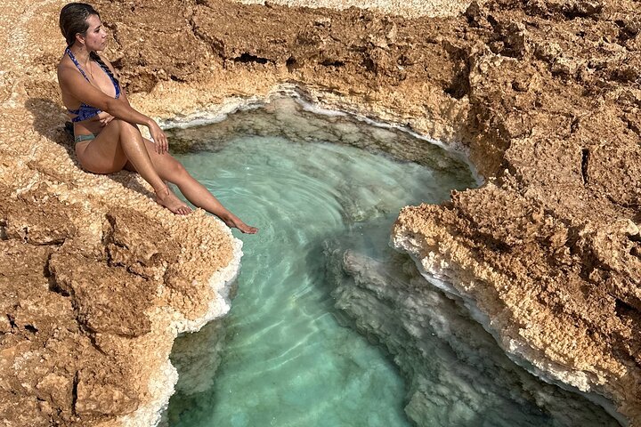 During the safari, you’ll also have the chance to swim in the natural salt lakes, located in the heart of the desert — a refreshing spot fed by water rising from 1,000 meters below ground.